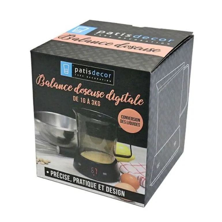 Avec La Balance Doseuse Digitale Patisdecor, Peser Vos Ingrédients Liquides Et Solides Ne Sera Plus Un Probleme Pour Vous.Avec Son Verre Doseur En Plastique Transparent Gradue, Vous Aurez Le Choix De Mesurer La Masse Ou La Contenance. La Balance Dispose D’Un Affichage Led Rouge, De Plusieurs Unites De Mesure, D’Une Fonction Tare Et D’Un Mode De Conversion Des Poids En Volumes Liquides.Le Plus : La Tare Se Fait Automatiquement Lorsque L’On Pose Le Verre Doseur Sur Le Socle !Capacite 1 A 3 Kg, Graduations 200 Ml A 1 000 Ml Et 1 Cup A 4 Cups.