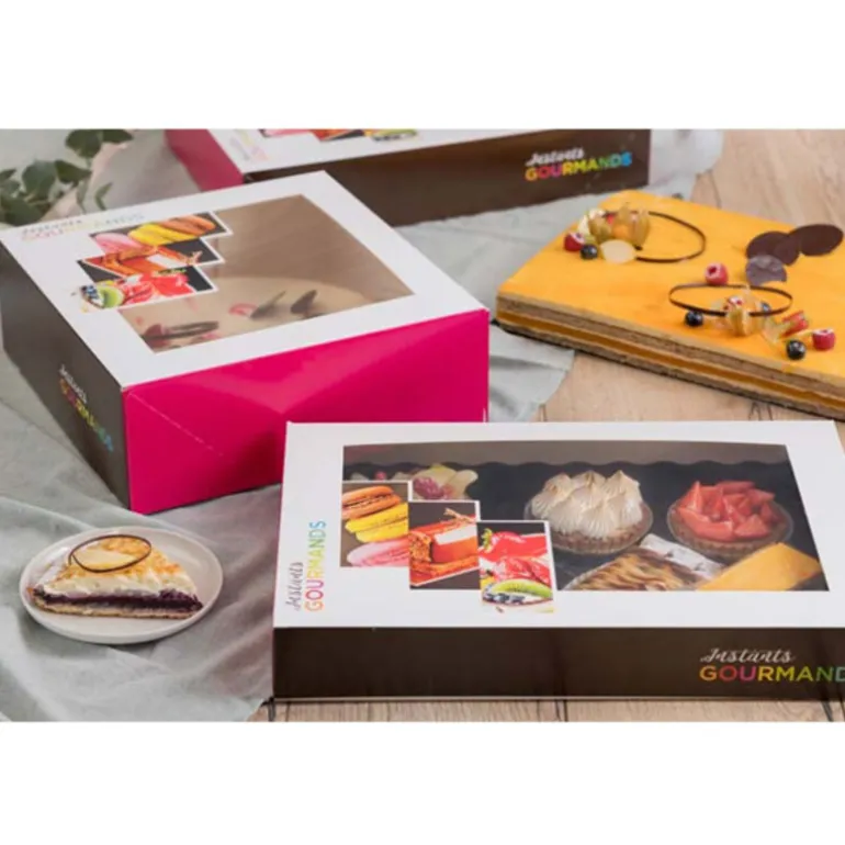 Boîtes Pâtissières A Fenetres De Forme Rectangulaire En Carton, Pour Emballer Et Transporter Plateaux De Mignardises Sucrees Et Salees Et Gâteaux De Grande Taille.