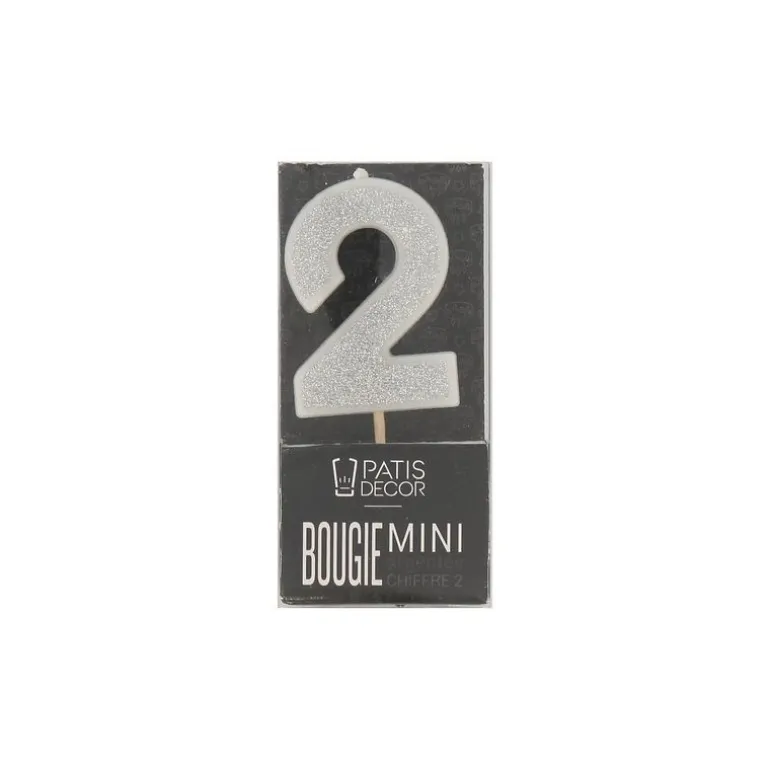 Bougie Argentee Pailletee Chiffre 2 Patisdecor