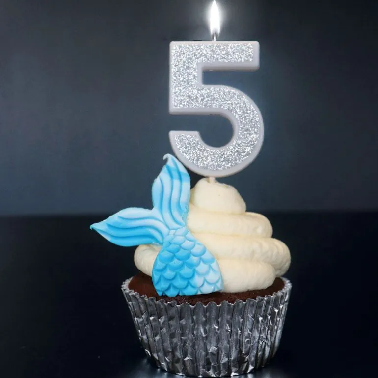 Bougie Argentee Pailletee Chiffre 5 Patisdecor