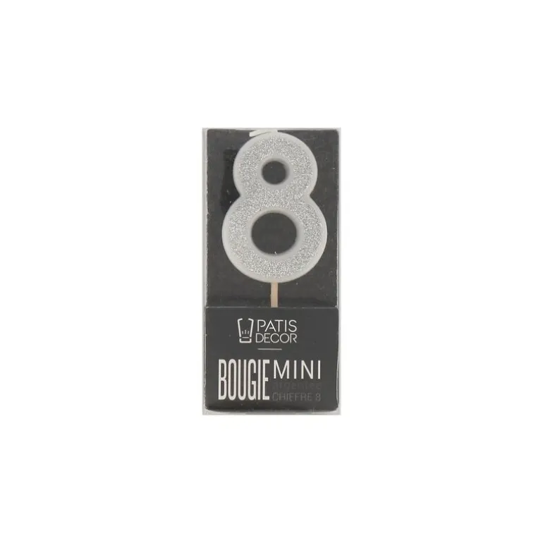 Bougie Argentee Pailletee Chiffre 8 Patisdecor