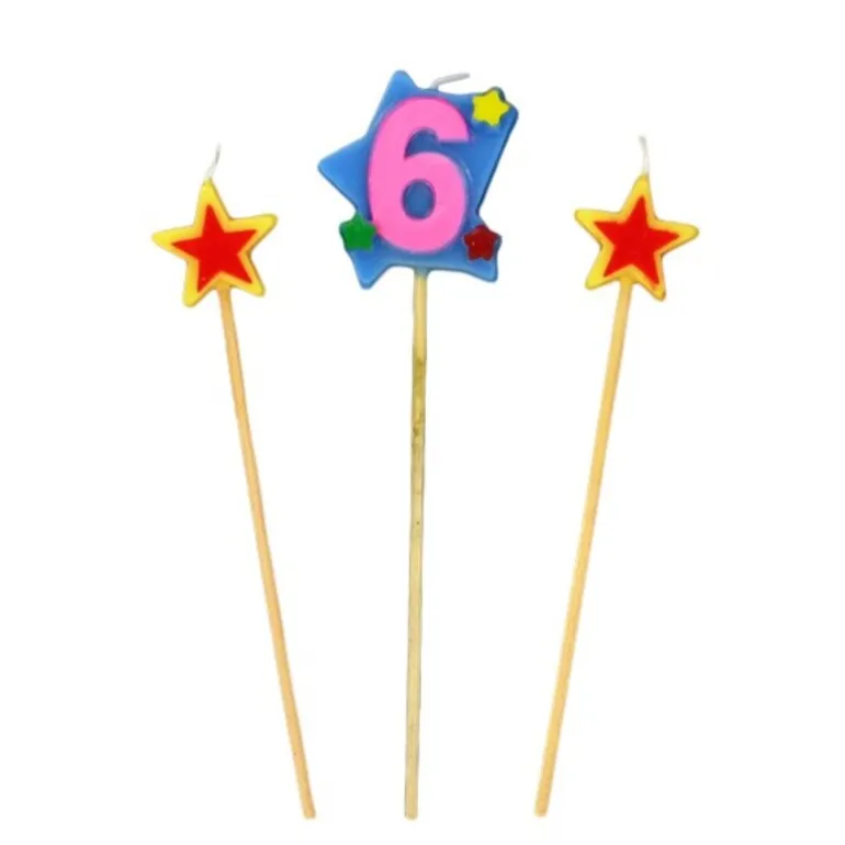 Bougies Chiffre 6 Et Etoiles Sur Piques Patisdecor