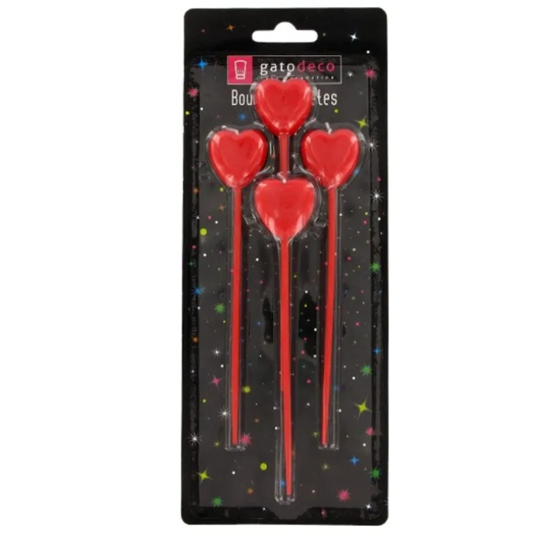 Bougies Coeurs Rouges Sur Pique Haute Patisdecor (X 4)