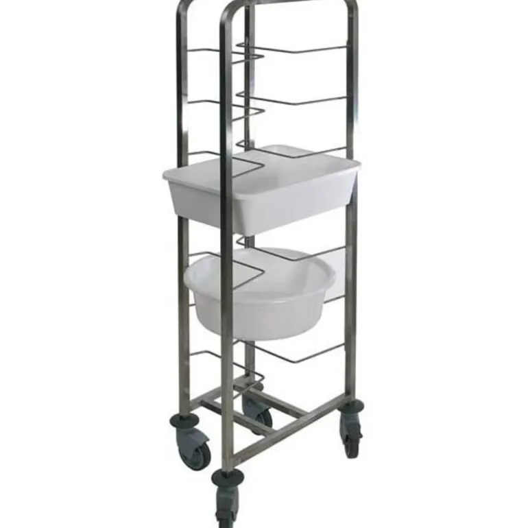 Chariot A Patons 8 Bacs Matfer Ce Chariot Bacs A Patons Convient A Tous Les Modeles De Bacs Ronds Et Rectangulaires. C’Est Un Chariot De Boulanger En Tube D’Acier Inoxydables, Avec Supports En Fil D’Inox Diametre 8 Mm. Ces Roues Sont E