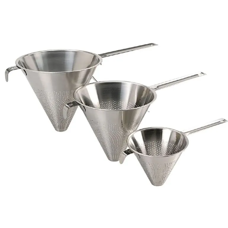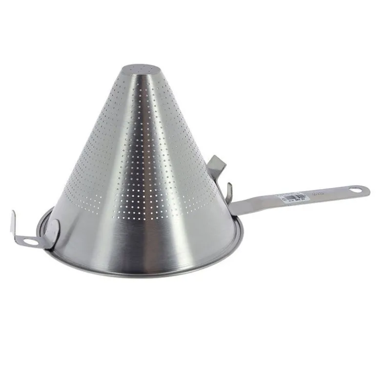 Passe-Sauce Chinois De 23 Cm De Diametre En Acier Inox Epais, Tres Resistant A L Usage. Face A La Queue, Se Trouve Un Crochet Qui Permet De Poser Le Chinois Dans Une Casserole. Ce Chinois Patissier De Qualite Professionnelle Est Particulierement Solide.