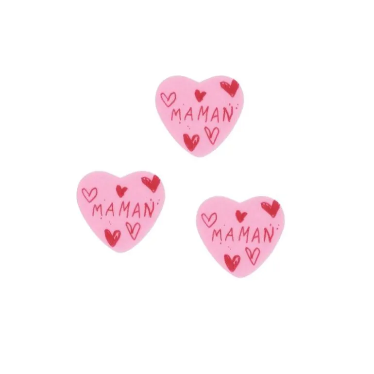 24 Coeurs En Azyme Maman Parfaits Pour La Décoration De Vos Gâteaux Et Cupcakes De Fete Des Mères. Dimensions : 42 X 39 Mm