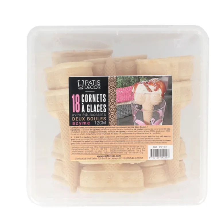 Boite Refermable De 18 Cornets À Glace Moules Doubles En Azyme A Bord Droit12 Cm, A Garnir De Creme Glacee, Sorbet Ou Fruits