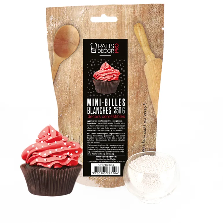 Décors Mini Billes Blanches Comestibles Patisdecor Pro 350 G
