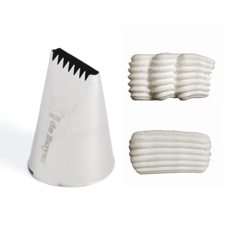 La Douille A Bûche Plate Inox O 3 Mm – 6 Dents Avec Un Cote Plat Et Un Cote Dente Est Utilisee Pour Appliquer Le Glacage Sur Les Bûches De Noël, Leur Donnant Leur Decor Si Caracteristiques.