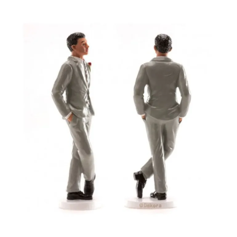 Sujet De Mariage En Résine, Representant Unmarieelegant Habille D’Un Costume Gris. Hauteur : 16 Cm