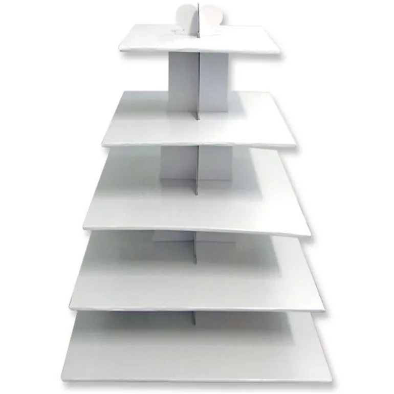 Grand Presentoir Cupcakes Blanc Carre Patisdecor 56 Cm Presentoir Cupcakes 5 Etages Blanc Carre, Parfait Pour La Presentation Des Petits Gâteaux, Tels Que Petits Fours Et Cupcakes. Entierement Demontable Et Transportable A Plat, Il S’Assemble Par Simple Emboitage.