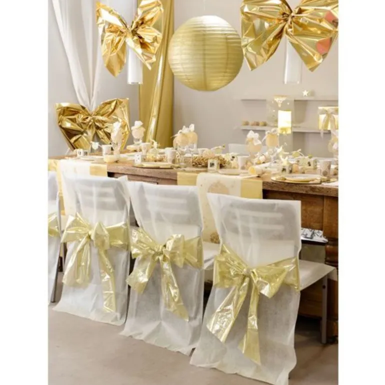 Housse De Chaise Bicolore Ivoire Noeud Metallise (X4) Realisez Une Superbe Décoration De Salle Et De Table Grace A Ces Superbes Housses De Chaise Bicolores ! D’Une Jolie Couleur Ivoire, Elles Comportent Egalement Un Noeud Metallise Dore, Qui S’Associeront Parfaitement A Une Décoration Ivoire / Or.