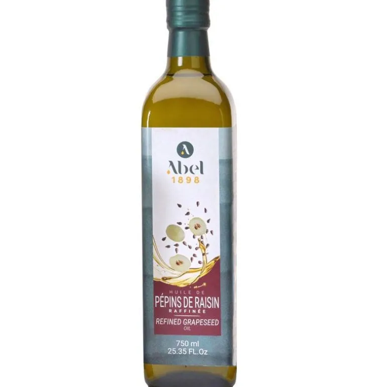 Huile De Pepins De Raisin Raffinee Conditionnee En Bouteille En Verre De 750 Ml, Utilisee Pour La Friture, La Cuisson Et L’Assaisonnement.