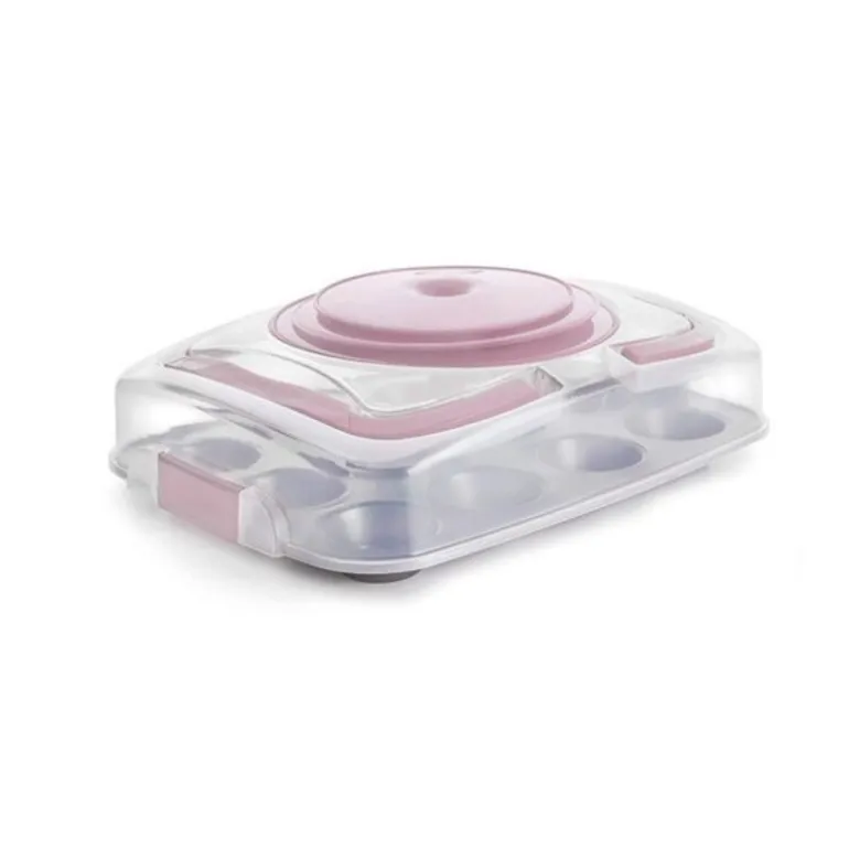Moule A Muffins Anti Adherent Fourni Avec Un Couvercle En Plastique Adaptable, Permettant De Le Transformer En Boite De Transport Etpresentoir En Plastique, A Assembler.