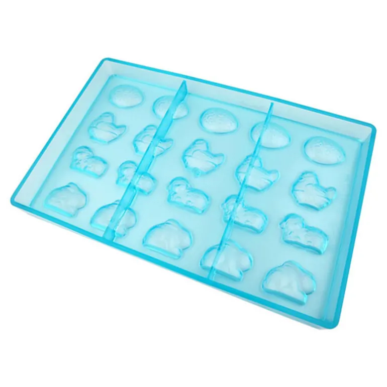 Moule Chocolat Fritures De Pâques, En Tritan, De Qualite Professionnelle, Pour La Realisation De 20 Empreintes (5 Agneaux, 5 Lapins, 5 Poules, 5 Oeufs) A Assembler.Dimensions Des Empreintes : De 3,5 A 4 Cm X Hde 2,5 A 3,5 Cm, Selon Le Modele