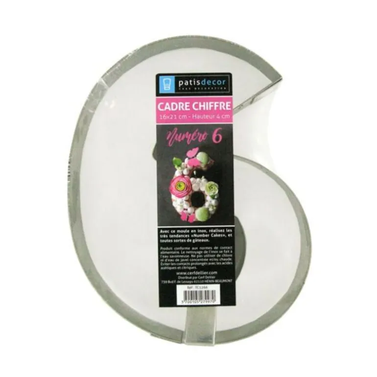 Cadre A Patisserie Chiffre 6 En Inox Pour La Preparation Et La Presentation D’Entremets Et De Gâteaux En Forme De Chiffre Et La Realisation D’Un Number Cake Aux Formes Et Aux Finitions Parfaites. Dimensions : 9 X 20 Cm Hauteur 4 Cm