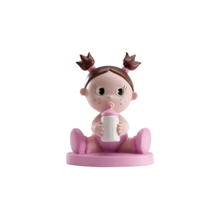 Decor De Baptême Fille Nina Biberon Rose En Résine Sur Socle, Hauteur 11 Cm.