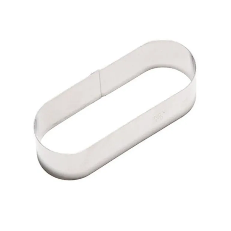 Moule De Presentation Individuelle Forme Oblong En Acier Inoxydable (Nonnettes), Utilisees Exclusivement A Des Fins D’Assemblage Et Non De Cuisson. Dimensions : 110 X 40 X H 30 Mm