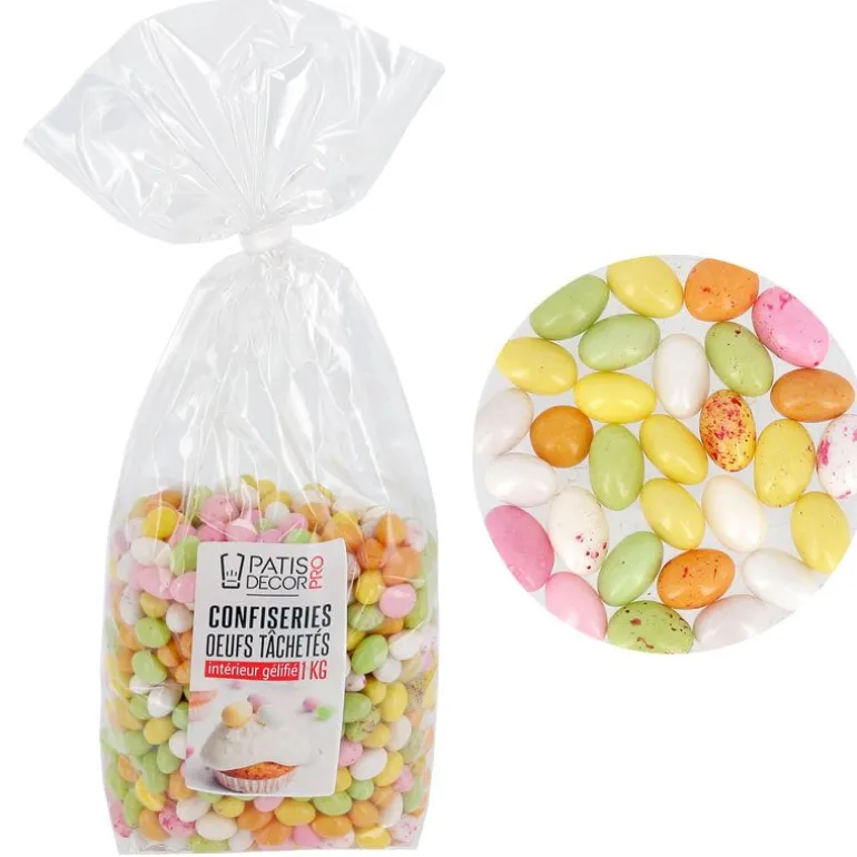 1 Kg D’Oeufs Gelifies (Sans Alcool) Tachetes Aromatisés Et Enrobes De Sucre, Utilises Pour Decorer Des Nids De Pâques, Mais Aussi Des Moulages En Chocolat.Ces Oeufs De Pâques Sont Fabriques En France.