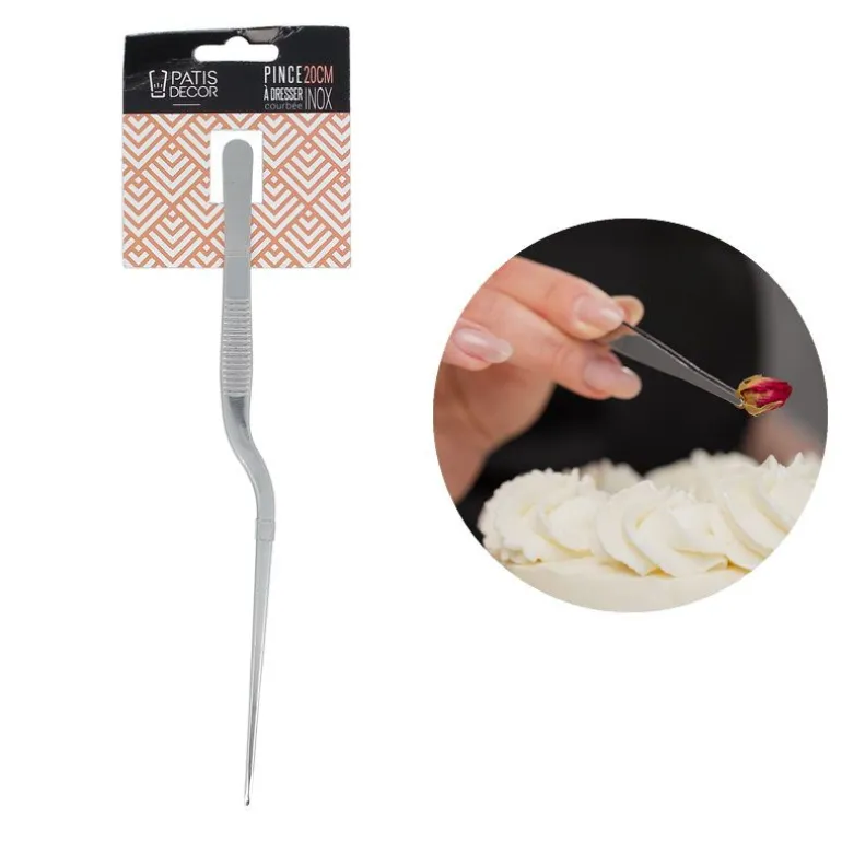 Pince A Dresser Courbee En Inox, Parfaite Pour Le Dressage Des Décorations De Vos Gâteaux Et De Vos Assiettes Avec Precision Et Delicatesse.