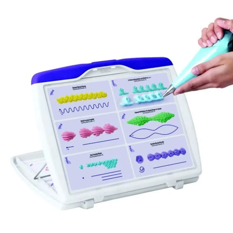 Perfectionnez Vos Competences En Decor A La Douille ! Coffret De 4 Planches De Pratique Pour Le Decor A La Poche A Douille, Inclinable Dans 4 Positions Et A Plat.
