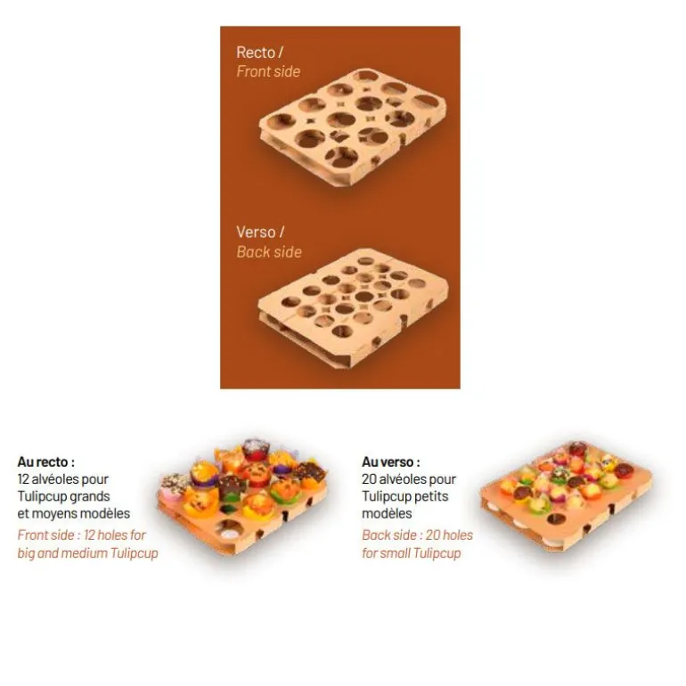 Cette Plaque De Calage Cartonnee Est Specialement Concue Pour Caler Les Moules En Papier Tulipcup / Muffins.Elle Facilite Leur Garnissage, Ainsi Que Leur Enfournement Et Leur Defournement, Et Leur Transport. Elles Sont Donc Ideales Pour La Cuisson Au Four.Plaque Double Face : Au Recto, 12 Alveoles Pour Tulipcup Grands Et Moyens Modeles, Au Verso, 20 Alveoles Pour Tulipcup Petits Modeles