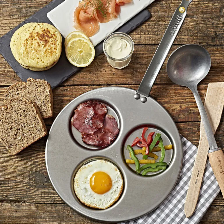 Poele Specialement Concue Pour La Cuisson Simultanee De 3 Blinis, 3 Beignets Ou 3 Pancakes De O 10Cm. Cette Poele Fait Partie De La Gamme Mineral B Element : Des Ustensiles De Cuisine Indeformables En Tole D’Acier Blanche Revetue De Cire D’Abeille.