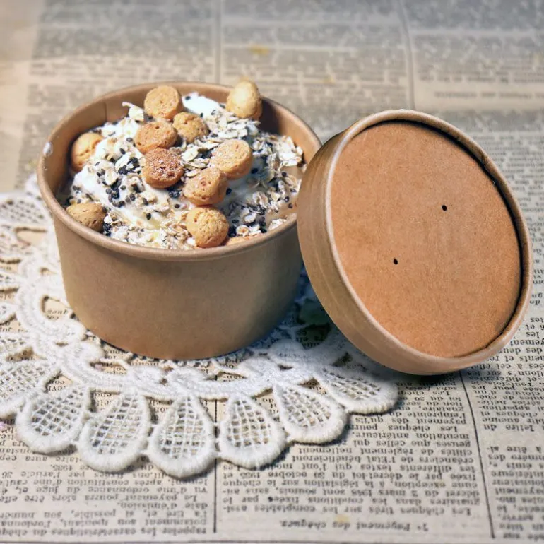 Lot De 8 Pots À Glace En Kraft Brun Avec Couvercles, Contenance 200 Ml, Pour La Vente A Emporter Et La Consommation De Glaces, Sorbets, Sundaes…