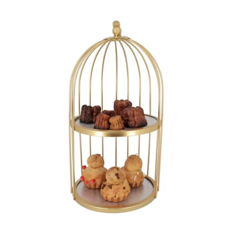 Presentoir Cage A Oiseaux Dore 2 Etages Patisdecor 20 Cm