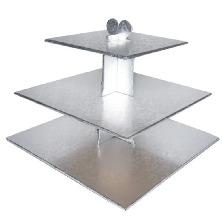 Presentoir Cupcakes Argent Carre Patisdecor 33 Cm Presentoir Cupcakes 3 Etages Carres Argentes, Parfait Pour La Presentation Des Petits Gâteaux, Tels Que Petits Fours Et Cupcakes. Entierement Demontable Et Transportable A Plat, Il S’Assemble Par Simple Emboitage.