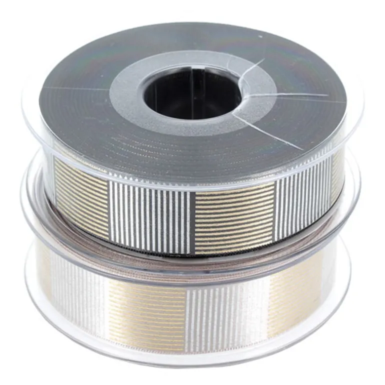 20 M De Ruban A Motifs Geometriques Or Et Argent, Noir Ou Gris, Ideal Pour Une Jolie Presentation De Vos Boîtes D’Emballage, Telles Que Ballotins Et Boîtes À Gâteaux. Largeur 25 Mm.