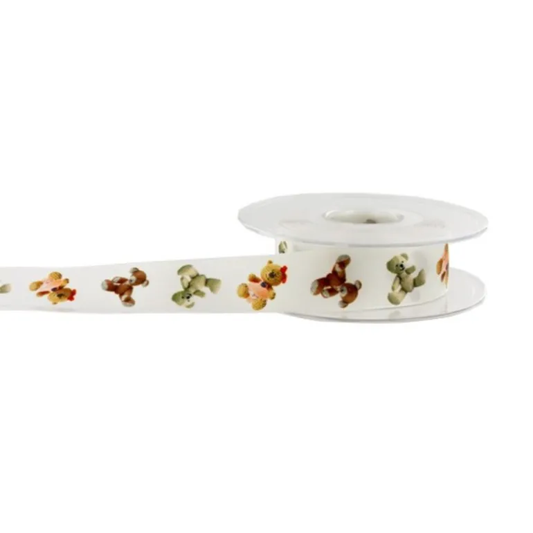 Bobine De 20 M De Ruban Impression Oursons, Parfait Pour L’Emballage Et La Presentation Des Ballotins Et Sachets Confiserie. Existe En Largeur 16 Ou 25 Mm.