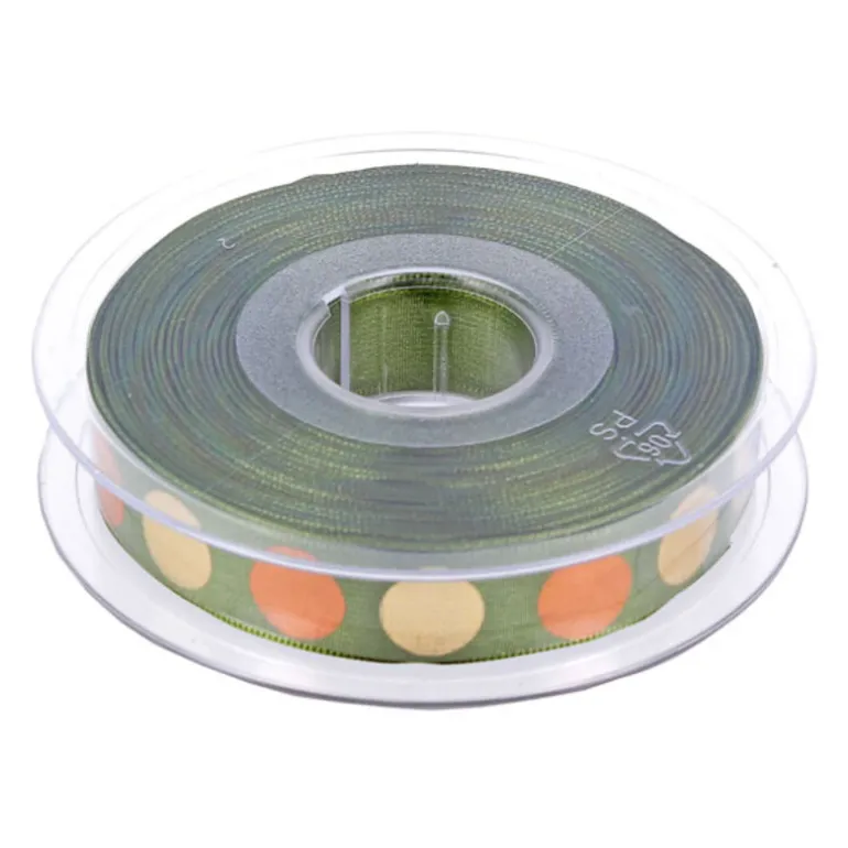 20 M De Ruban Vert Decorede Ronds Brillants Cuivre Et Or, Ideal Pour Une Jolie Presentation De Vos Boîtes D’Emballage, Telles Que Ballotins Et Boîtes À Gâteaux. Largeur 16Mm.