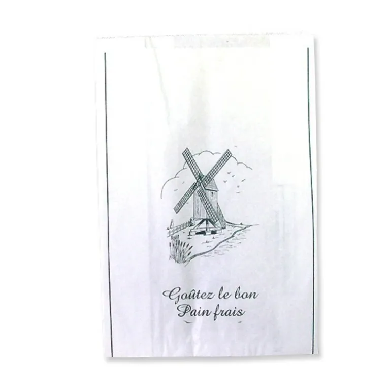 Sac A Pain Rond Kraft Blanchi (X1000) Sacs A Pain Rond En Papier Kraft Blanchi Avec Soufflets, Impression Verte « Goutez Le Bon Pain Frais », Vendus Par Lot De 1000 Pièces De Taille Identique. Le Sac A Pain Kraft Blanchi Mesure