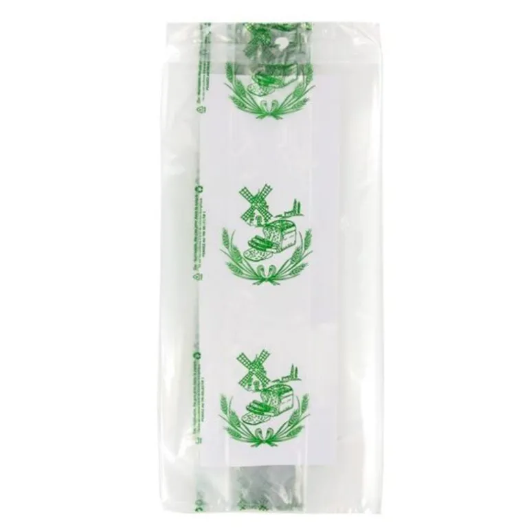 Sacs A Pain Transparents En Polypropylene Impression Verte 50 Μ, Parfaits Pour Les Boulangers Qui Vendent Leur Pain. Dimensions : 160 X 50 X 350 Mm