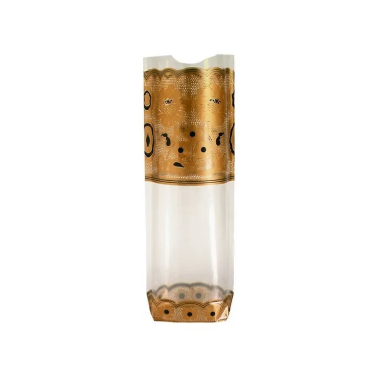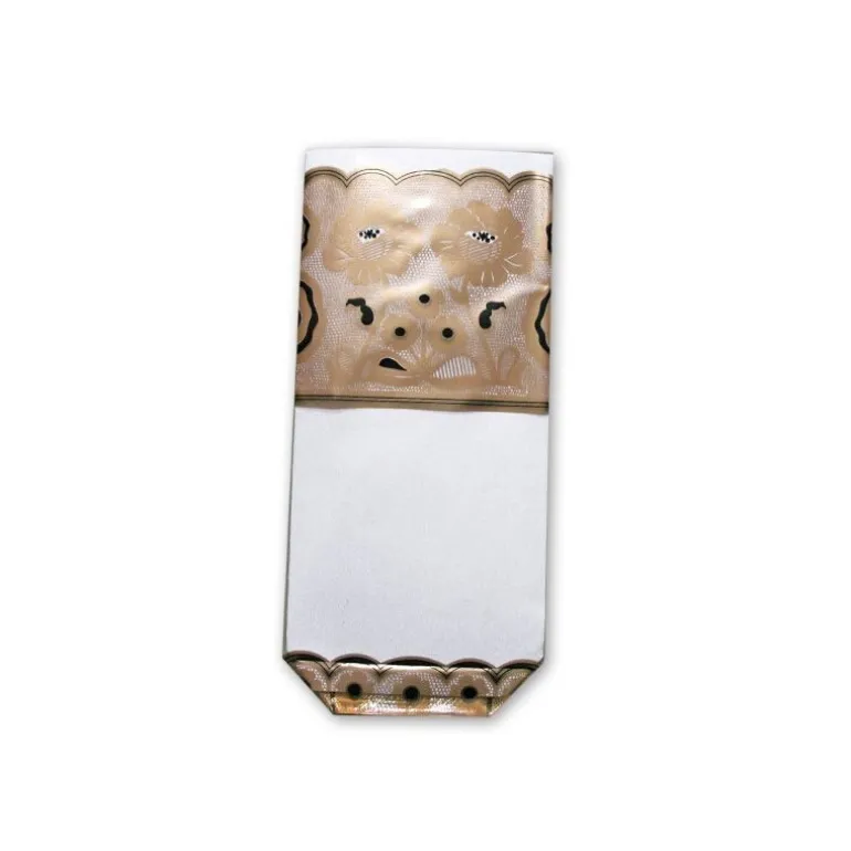 Sacs Polypropylene Transparent A Fond Carton, Decor Dentelle Fleurs Or Et Noir, Pour Emballer Vos Confiseries Et Chocolats. Dimensions : 10 X 22 Cm