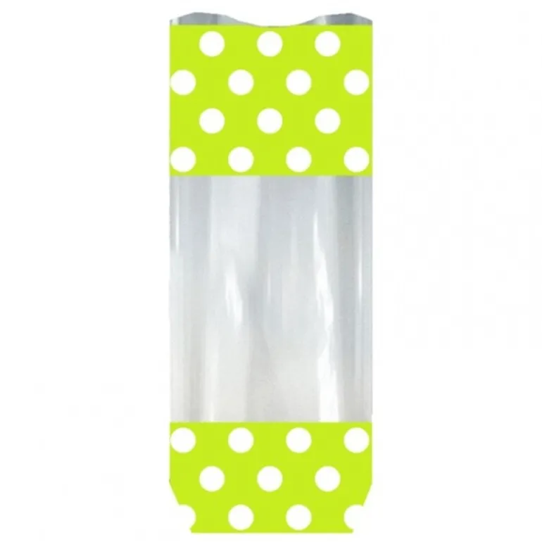 Sachet Anis Pois Blancs Fond Carton (X100) 100 Sacs Polypropylene Transparent A Fond Carton, Coloris Anis Decore De Pois Blancs, Pour Emballer Vos Confiseries, Chocolats Et Petits Oeufs De Pâques. Le Sac Polypropylene Est Disponib