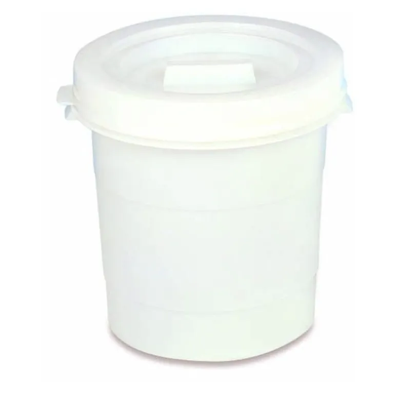 Conteneur A Couverclepour Stocker Et Transporter Les Aliments Et Les Préparations. Fabrique Enpolyethylenehaute Densite Blanc. Dimensions :O 385 X 385Mm. Capacite :30 Litres.