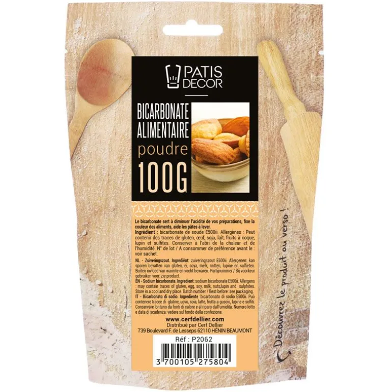 Le Bicarbonate Alimentaire Patisdecor Est Utilise Pour Diminuer L’Acidite Des Préparations. Il Fixe La Couleur Des Aliments, Favorise La Digestion, Aide Les Gâteaux A Lever, Etc.