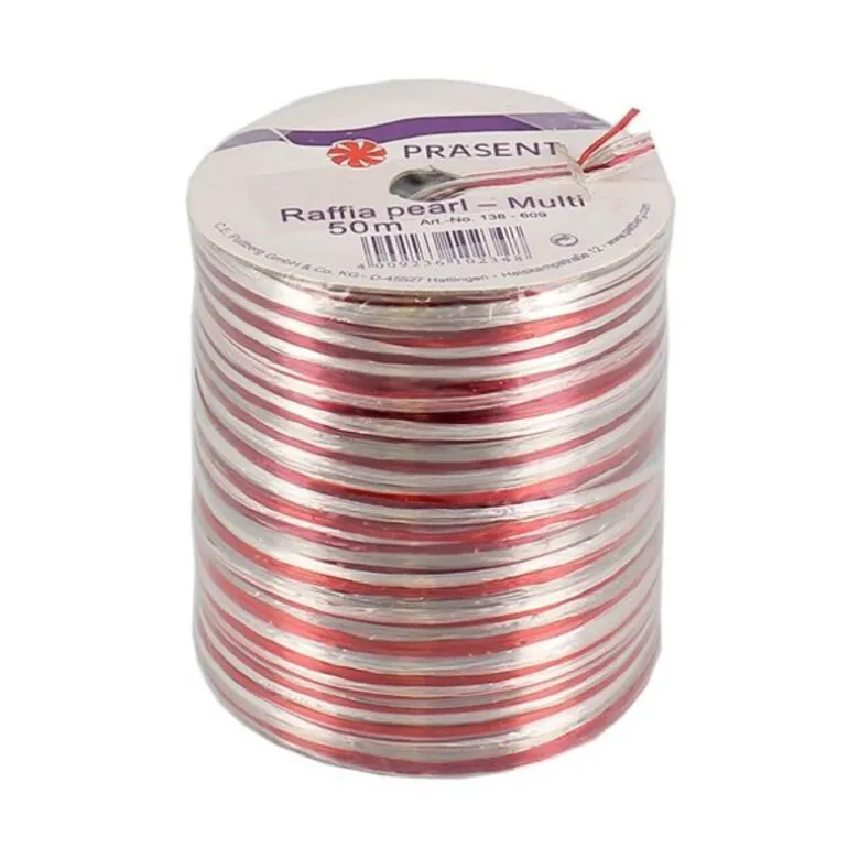 Bolduc Raphia Pearl Rouge / Argent 50 M