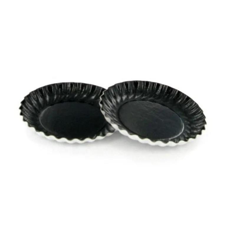 100 Mini Assiettes Rondes En Carton Noir, O 88 Mm, Pour La Presentation Des Entremets Individuels.