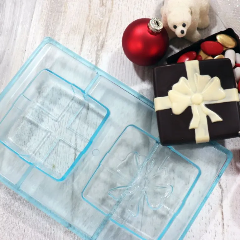 Moule A Chocolat Bonbonniere Cadeau Moule / Plaque A Chocolat Permettant De Confectionner Une Bonbonniere En Chocolat En Forme De Paquet Cadeau. Points Forts : Brillance, Demoulage Aise, Entretie