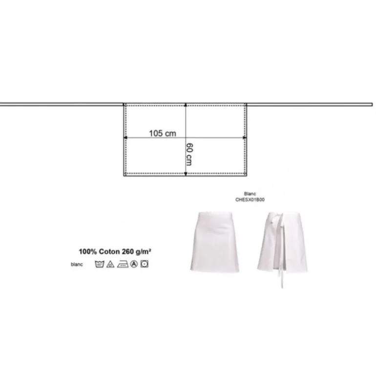 Tablier De Chef Blanc 55 Cm